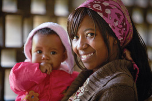 Proud mother with 6-month-old daughter in Nairobi. She did not want to hear about family planning until a nurse talked to her about child health and education opportunity. Photo from Gates Foundation/Flickr/cc