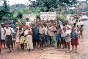 At a health center in rural Nigeria. Note the percentage of people under age 15.
